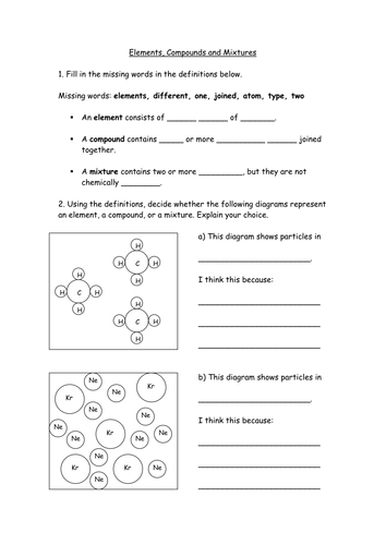 1 | atoms and molecules. Students will apply lesson material upon completion of the worksheet. In a compound, there is more than in addition, some mixtures may never turn into compounds no matter how much energy you supply. A mixture (is/is not) a chemical combining of substances. By the way, concerning elements compounds and mixtures worksheet answer key, scroll the page to see various variation of images to inform you continue with more related things such elements compounds and mixtures worksheet answers, element compound mixture worksheet and.